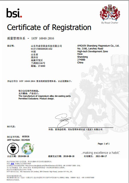 华盛荣园区占地80万平方米,包含镁合金铸锭、板材、挤压、压铸、装配5个生产区,以及生产配套区、物流区、办公科研区等。产品主要应用领域有汽车、高铁、通讯及民用行业。华盛荣不仅提供挤压和压铸服务,还可协助客户共同开发新产品,提供机加工及表面处理服务。山东华盛荣镁业科技有限公司,成立于2010年1月。注册资金2.55亿元。现有挤压生产线2条(4500吨宽幅挤压机是国内最大吨位专业镁挤压机)、压铸生产线11条(其中5条进口),配备后续CNC加工和喷涂生产线,可为客户提供完善的交付服务和整体的镁合金产品解决方案。